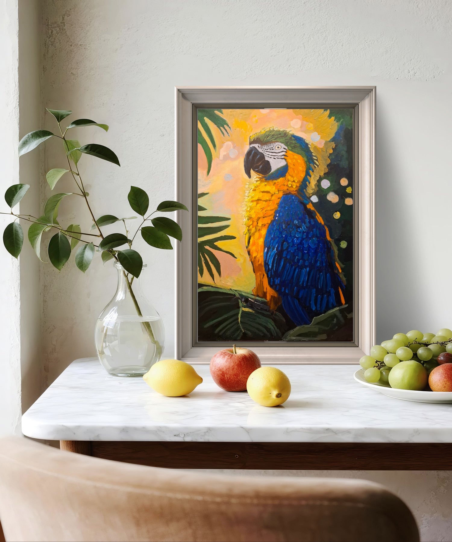 Vibrant Parrot in Forest - Original Oil Painting 23.5x16.5 Canvas